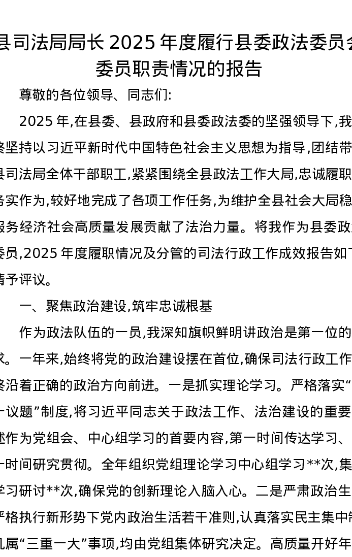 县司法局局长2025年度履行县委政法委员会委员职责情况的报告