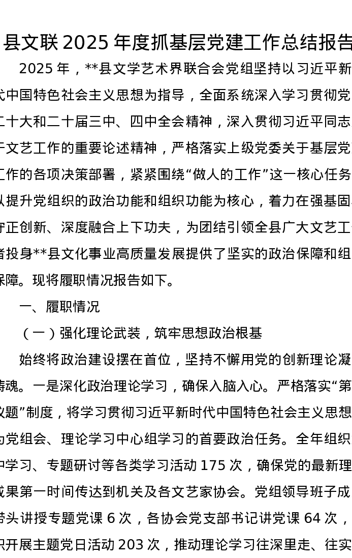 县文联2025年度抓基层党建工作总结报告