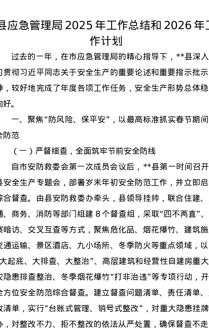 县应急管理局2025年工作总结和2026年工作计划