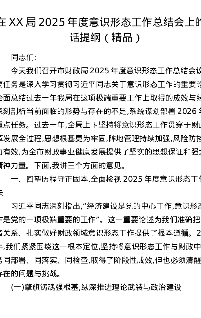在XX局2025年度意识形态工作总结会上的讲话提纲