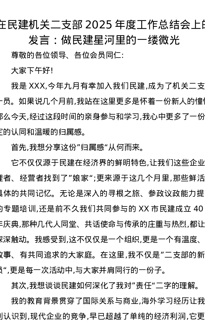 在民建机关二支部2025年度工作总结会上的发言:做民建星河里的一缕微光