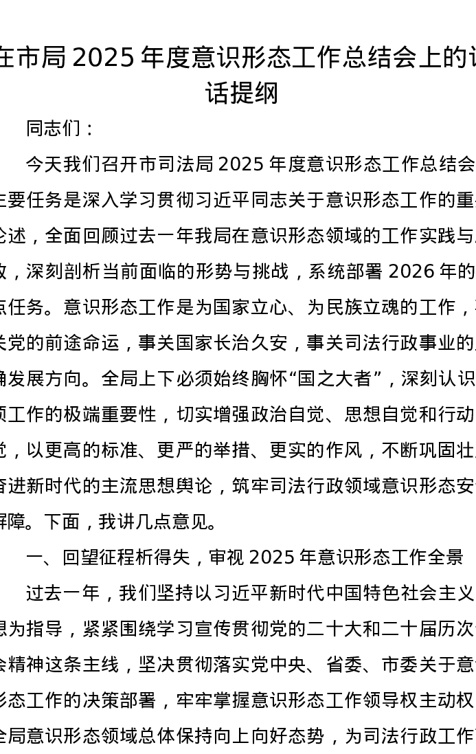 在市局2025年度意识形态工作总结会上的讲话提纲