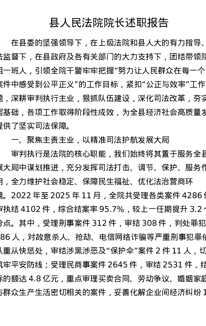 县人民法院院长述职报告
