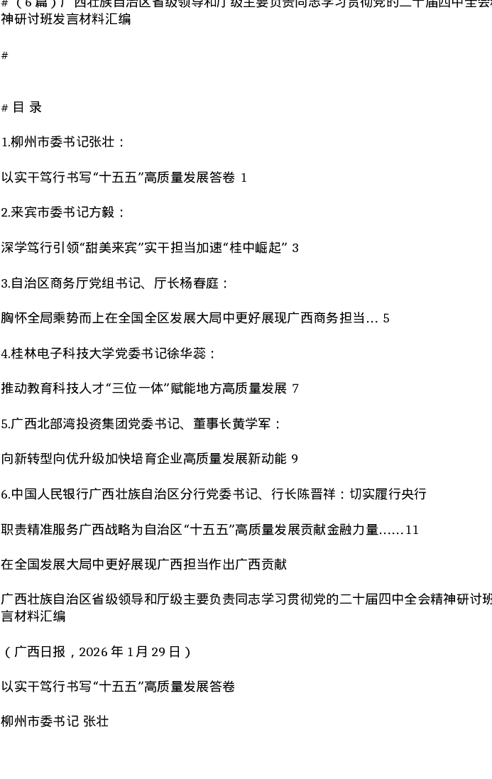 汇编:广西壮族自治区省级领导和厅级主要负责同志学习贯彻党的二十届四中全会精神研讨班发言6篇