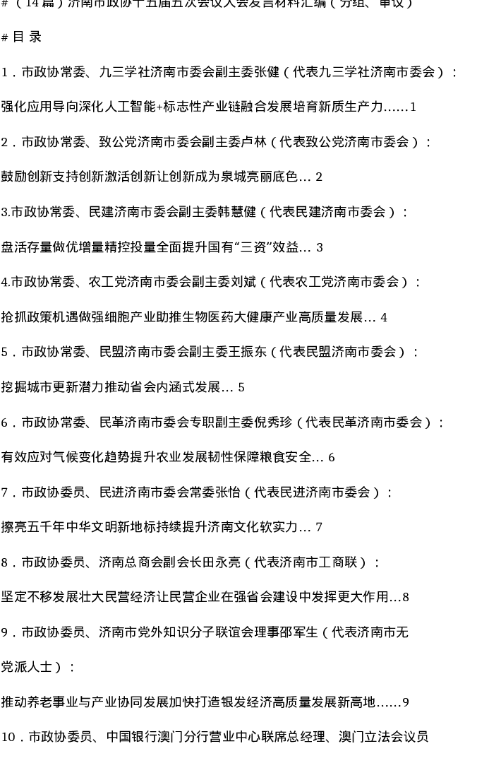 汇编:济南市政协十五届五次会议大会发言材料汇编(分组、审议)14篇
