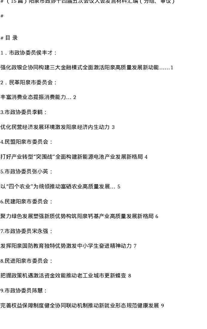 汇编:阳泉市政协十四届五次会议大会发言材料汇编(分组、审议)15篇