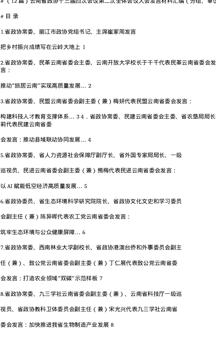 汇编:云南省政协十三届四次会议第二次全体会议大会发言材料汇编(分组、审议)12篇