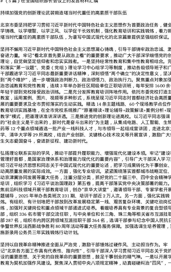 汇编:在全国组织部长会议上的发言5篇