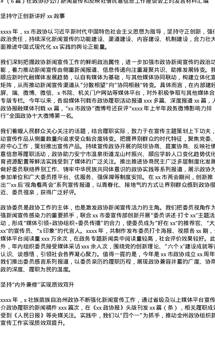 汇编:在政协办公厅新闻宣传和反映社情民意信息工作座谈会上的发言6篇
