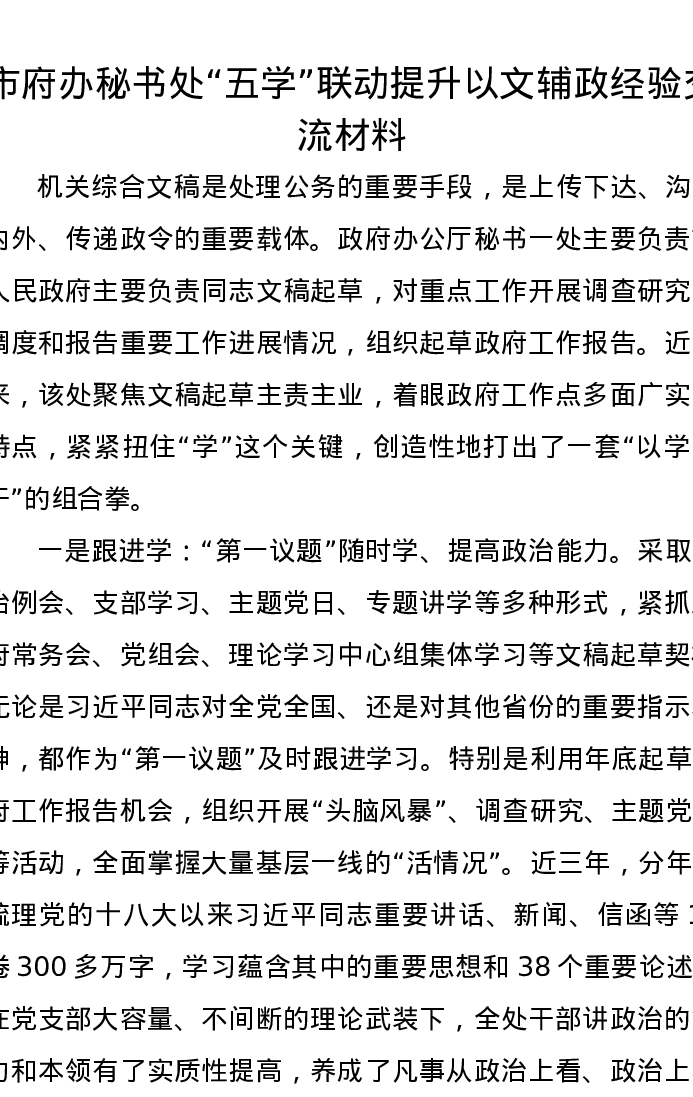 市府办秘书处五学联动提升以文辅政经验交流发言材料