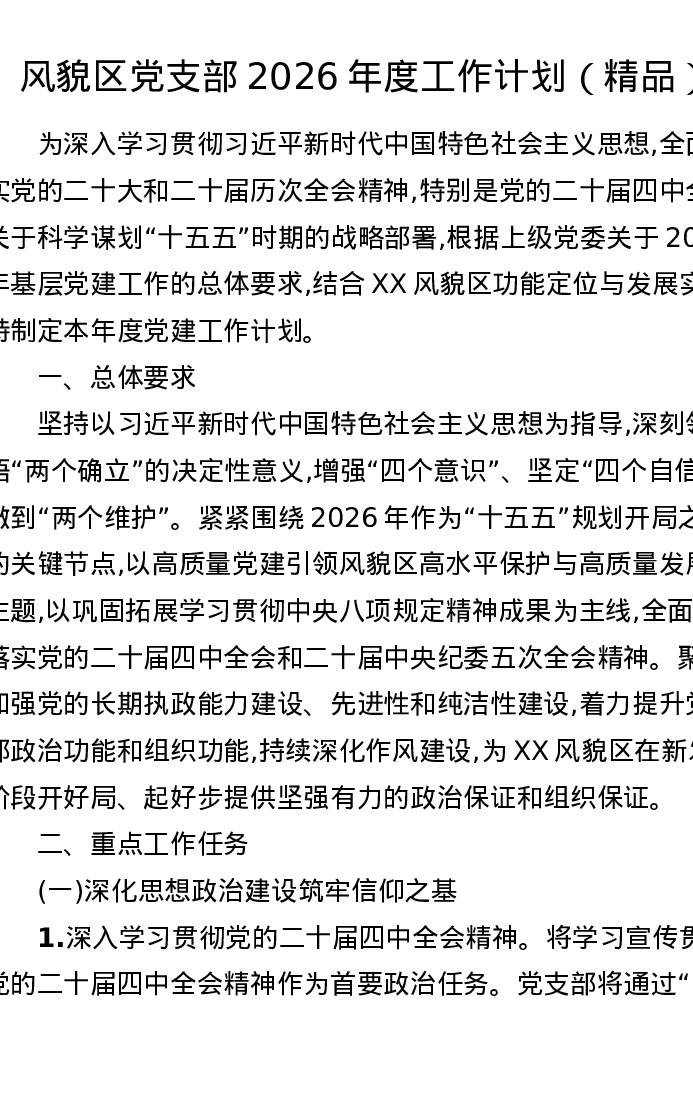 风貌区党支部2026年度工作计划