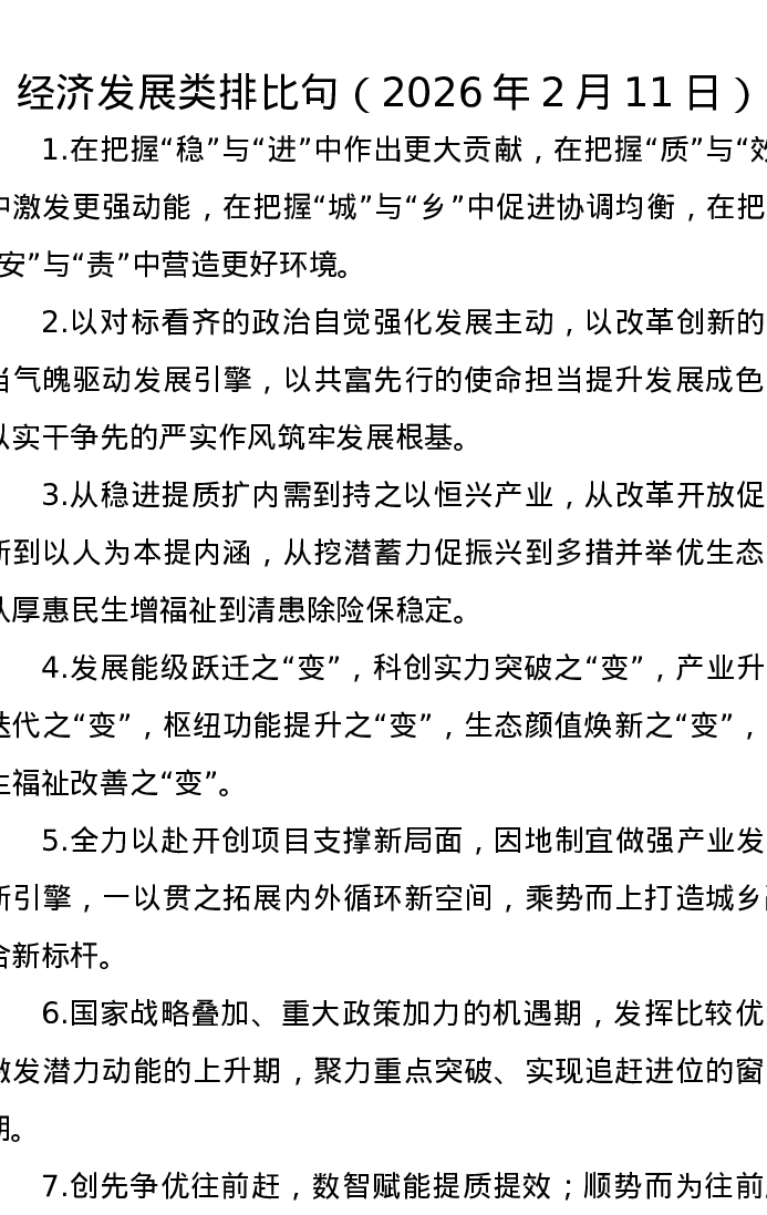 经济发展类排比句(2026年2月11日)
