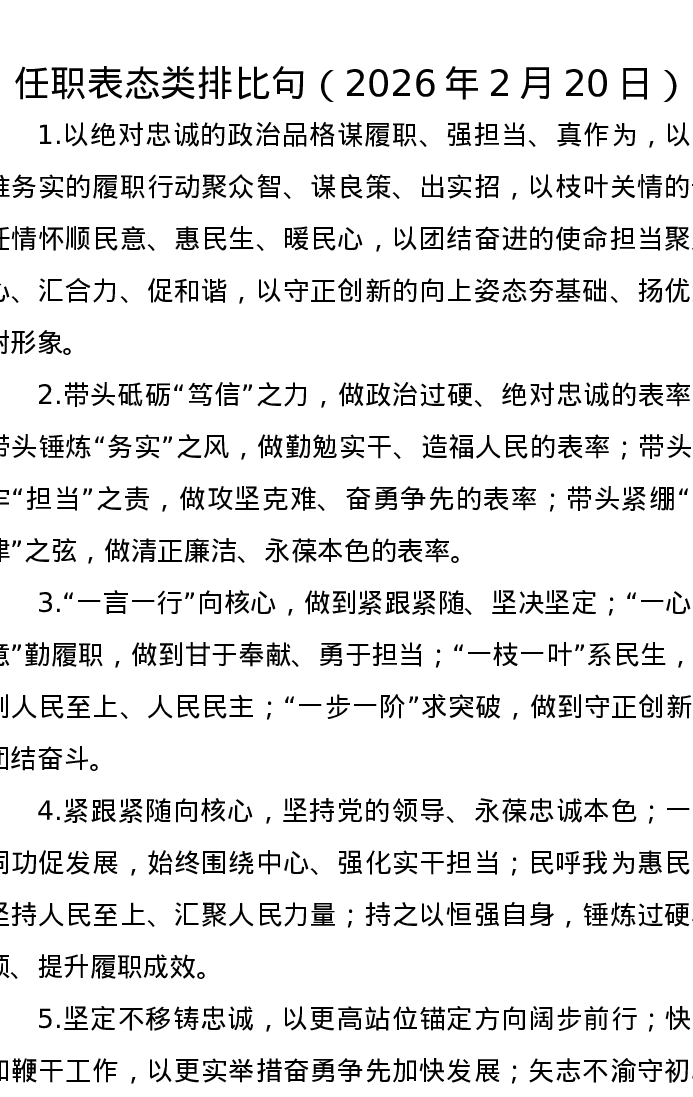 任职表态类排比句(2026年2月20日)