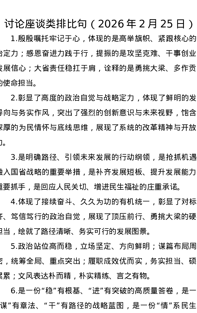 讨论座谈类排比句(2026年2月25日)