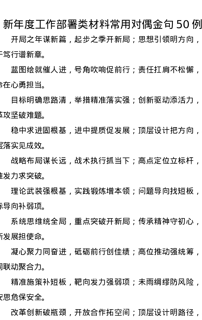 新年度工作部署类材料常用对偶金句50例