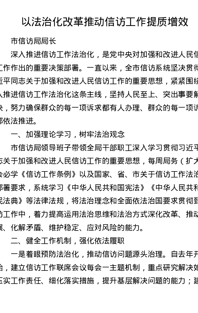 以法治化改革推动信访工作提质增效