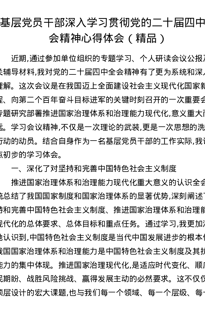 基层党员干部深入学习贯彻党的二十届四中全会精神心得体会