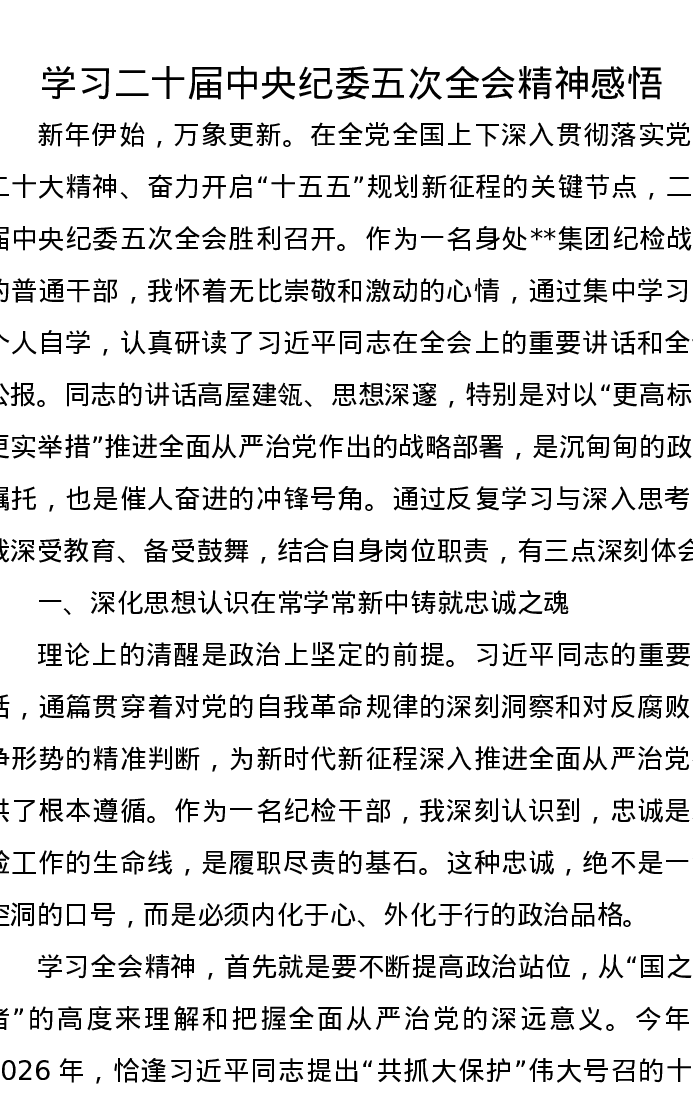学习二十届中央纪委五次全会精神感悟心得