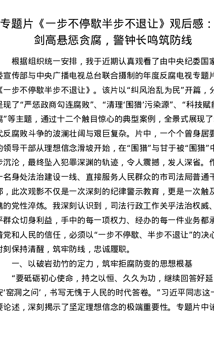 专题片《一步不停歇半步不退让》观后感:利剑高悬惩贪腐,警钟长鸣筑防线