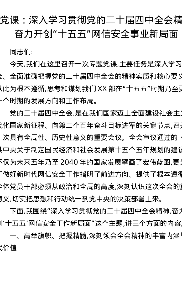 党课:深入学习贯彻党的二十届四中全会精神奋力开创十五五网信安全事业新局面