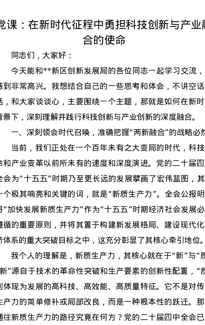 党课:在新时代征程中勇担科技创新与产业融合的使命
