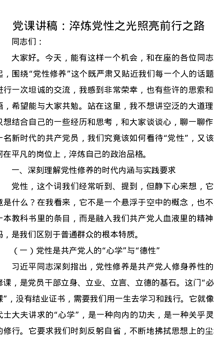 党课讲稿:淬炼党性之光 照亮前行之路