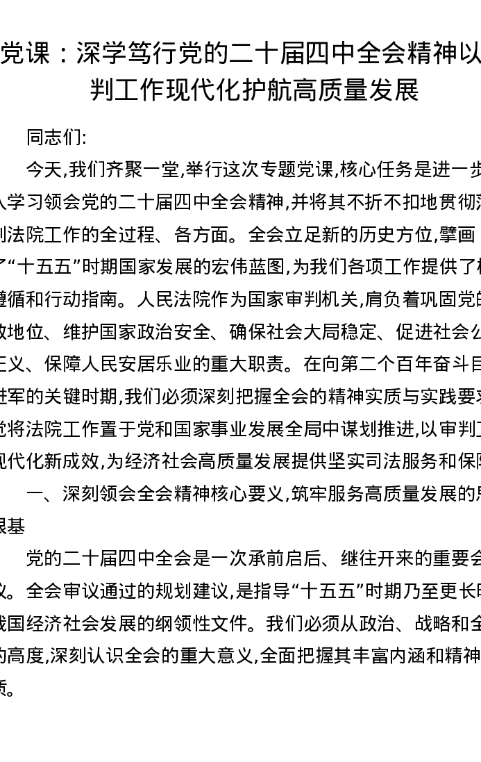 党课讲稿:深学笃行党的二十届四中全会精神 以审判工作现代化护航高质量发展
