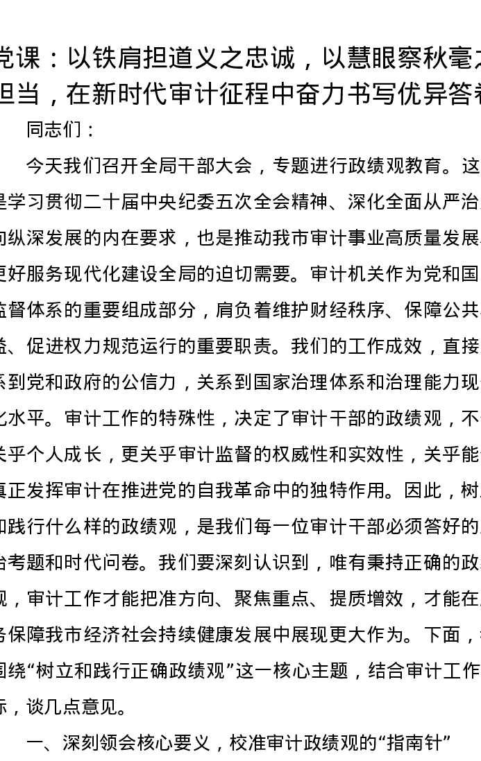 党课讲稿:以铁肩担道义之忠诚,以慧眼察秋毫之担当,在新时代审计征程中奋力书写优异答卷