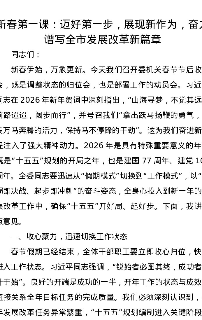 新春第一课:迈好第一步,展现新作为,奋力谱写全市发展改革新篇章