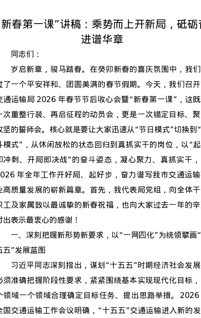 新春第一课讲稿:乘势而上开新局,砥砺奋进谱华章