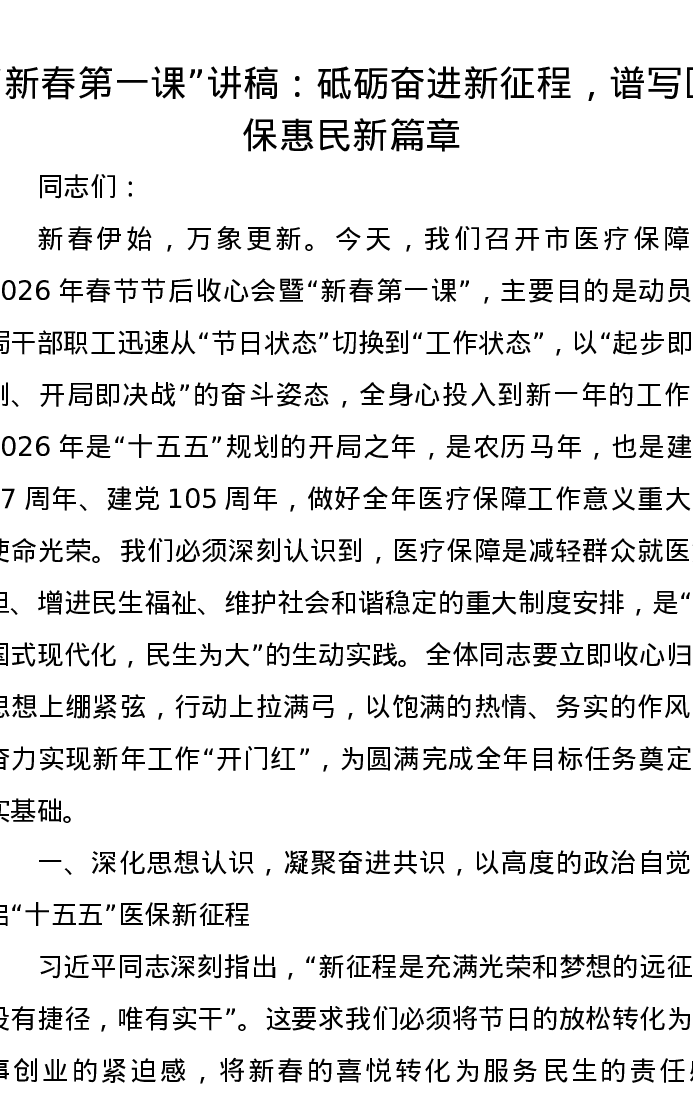 新春第一课讲稿:砥砺奋进新征程,谱写医保惠民新篇章