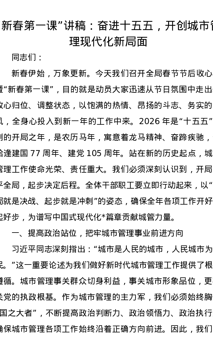新春第一课讲稿:奋进十五五,开创城市管理现代化新局面