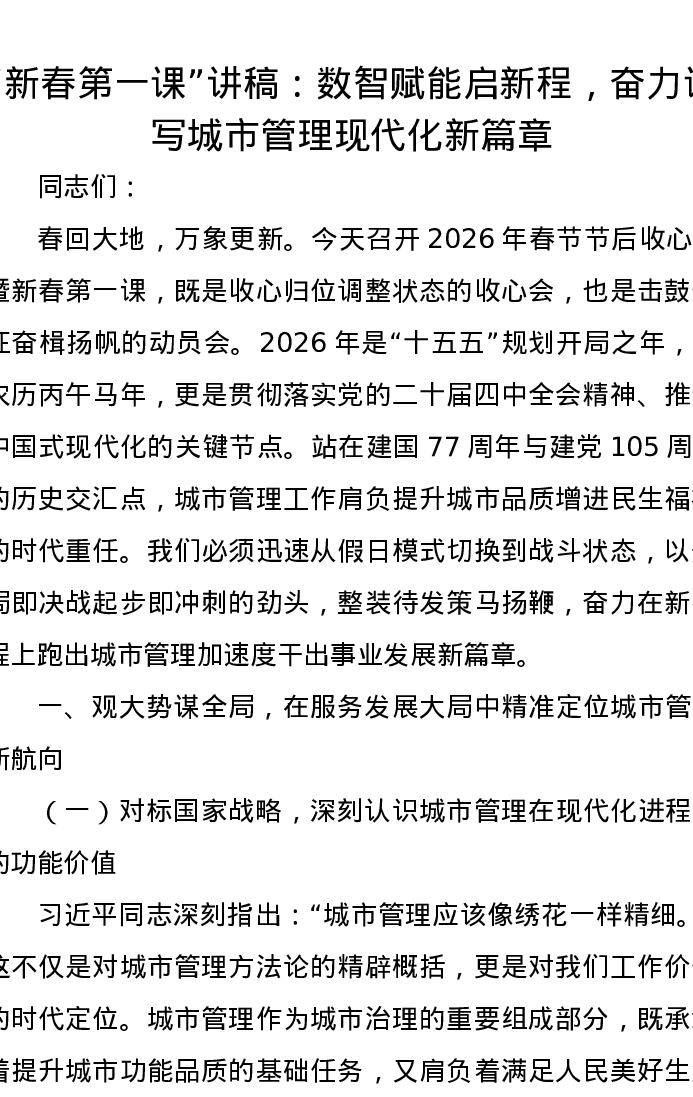 新春第一课讲稿:数智赋能启新程,奋力谱写城市管理现代化新篇章