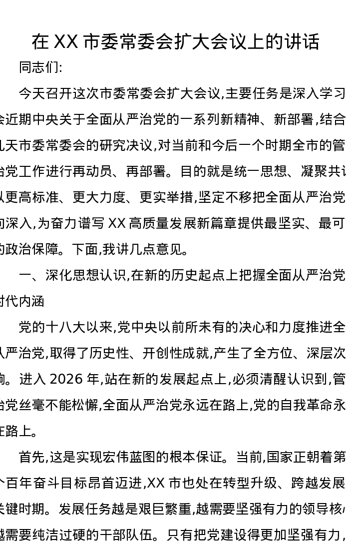 在XX市委常委会扩大会议上的讲话3