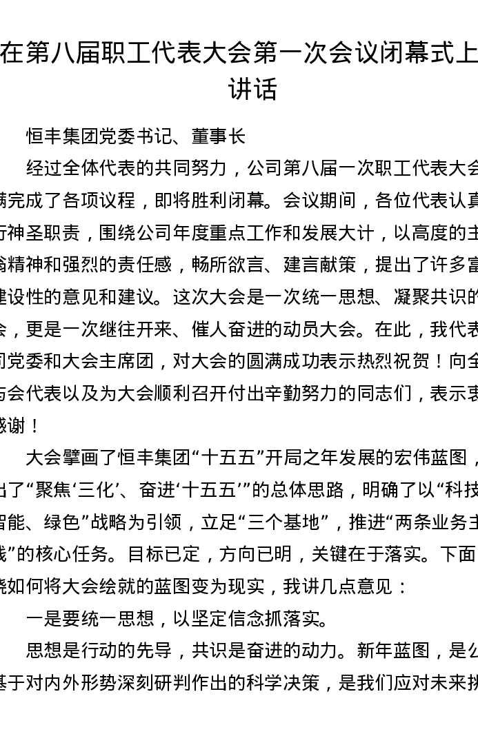 在第八届职工代表大会第一次会议闭幕式上的讲话