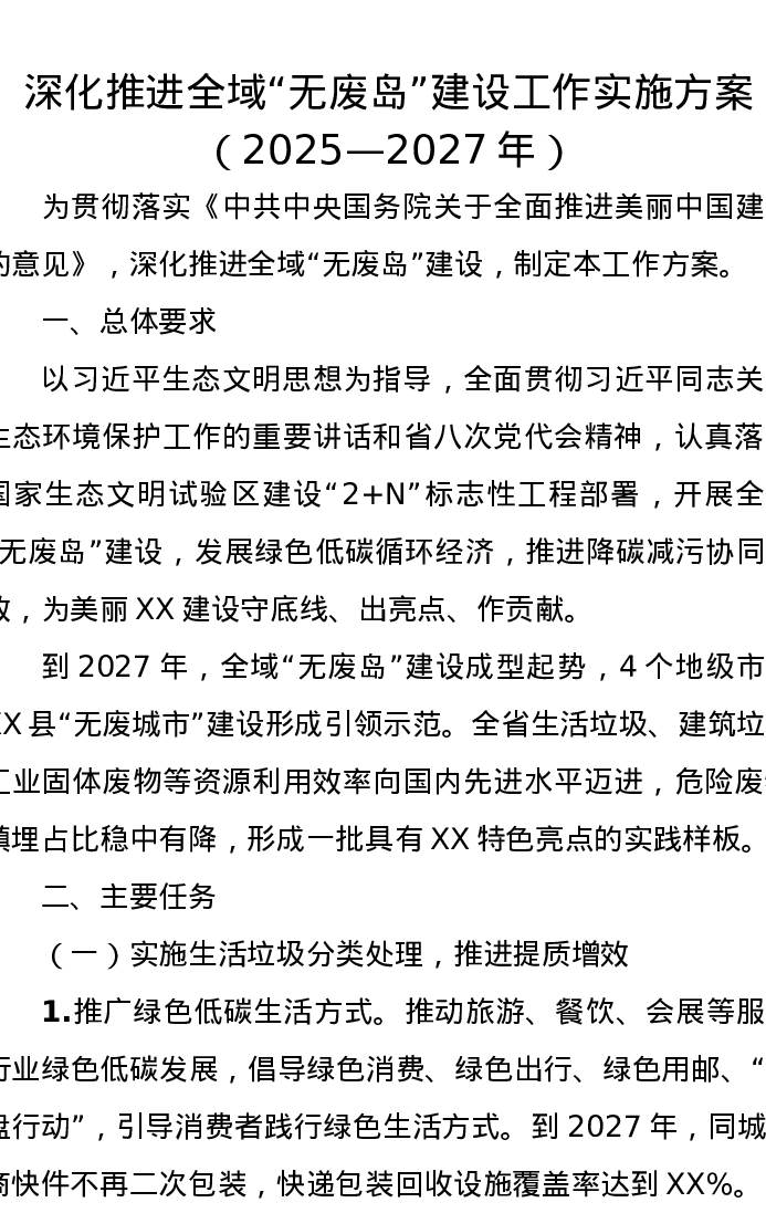 深化推进全域无废岛建设工作实施方案(2025—2027年)