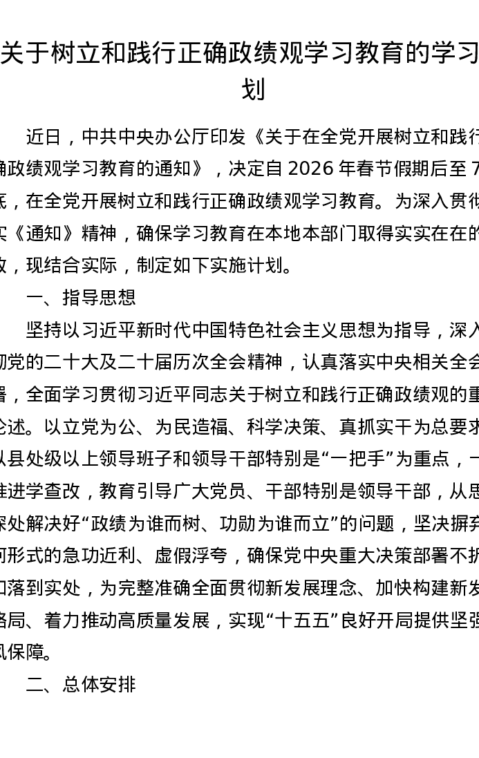 关于树立和践行正确政绩观学习教育的学习计划