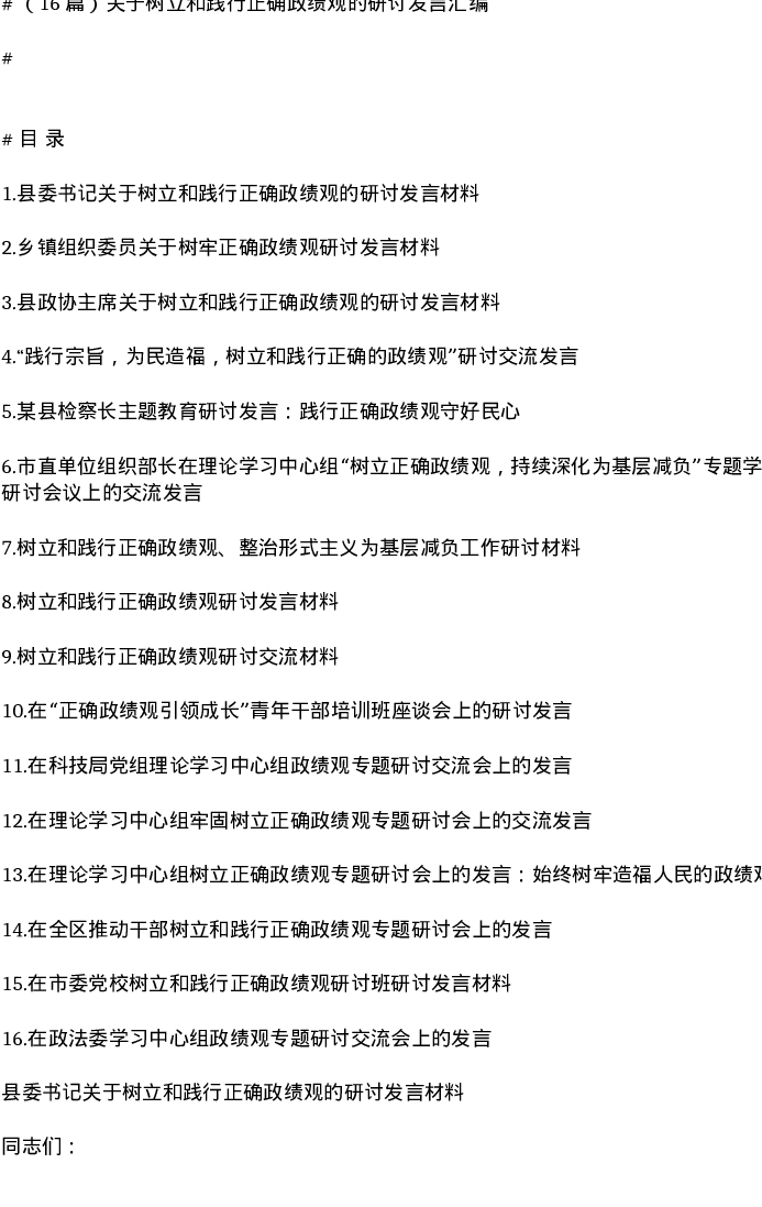 汇编:关于树立和践行正确政绩观的研讨发言16篇