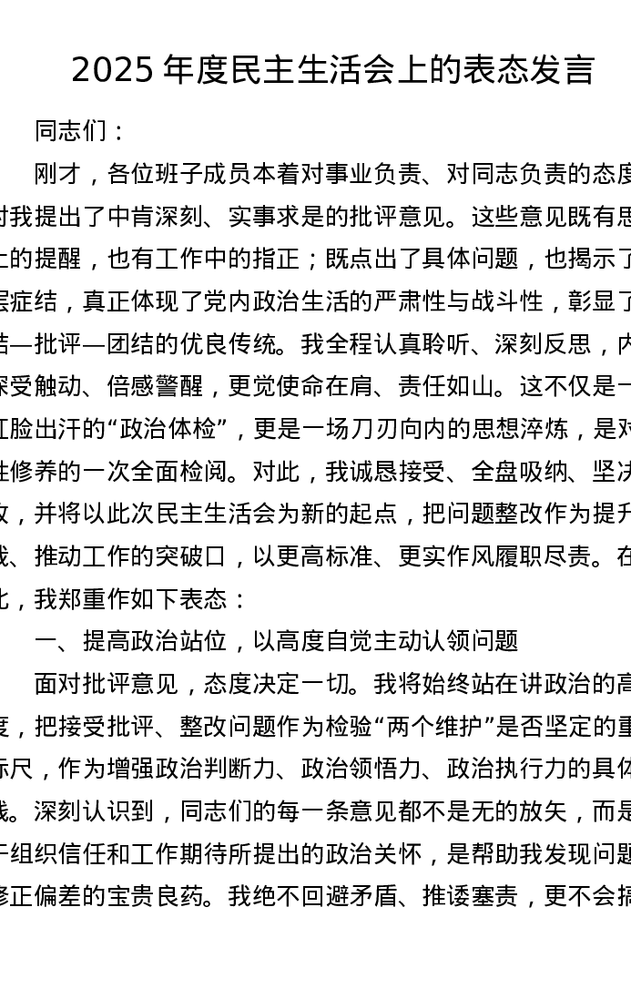 2025年度xxxxx上的表态发言