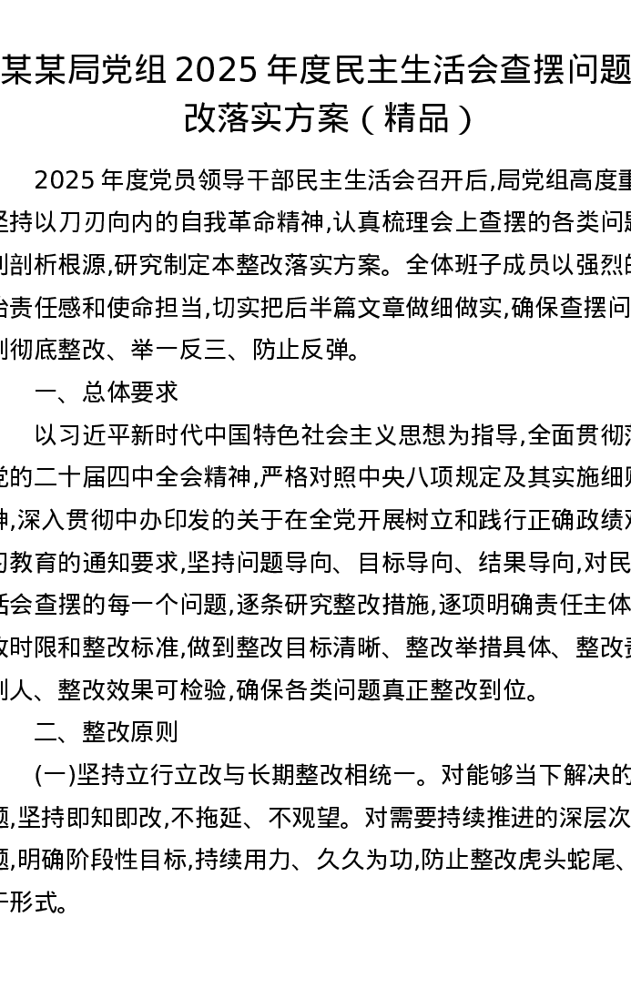 某某局党组2025年度xxxxx查摆问题整改落实方案