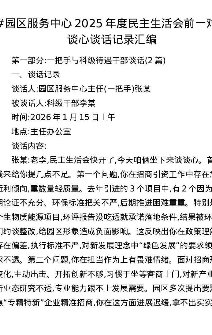 园区服务中心2025年度xxxxx前一对一谈心谈话记录汇编