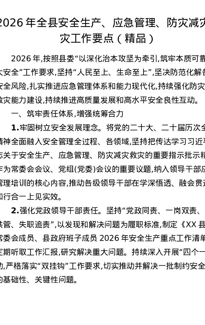 2026年全县安全生产、应急管理、防灾减灾救灾工作要点