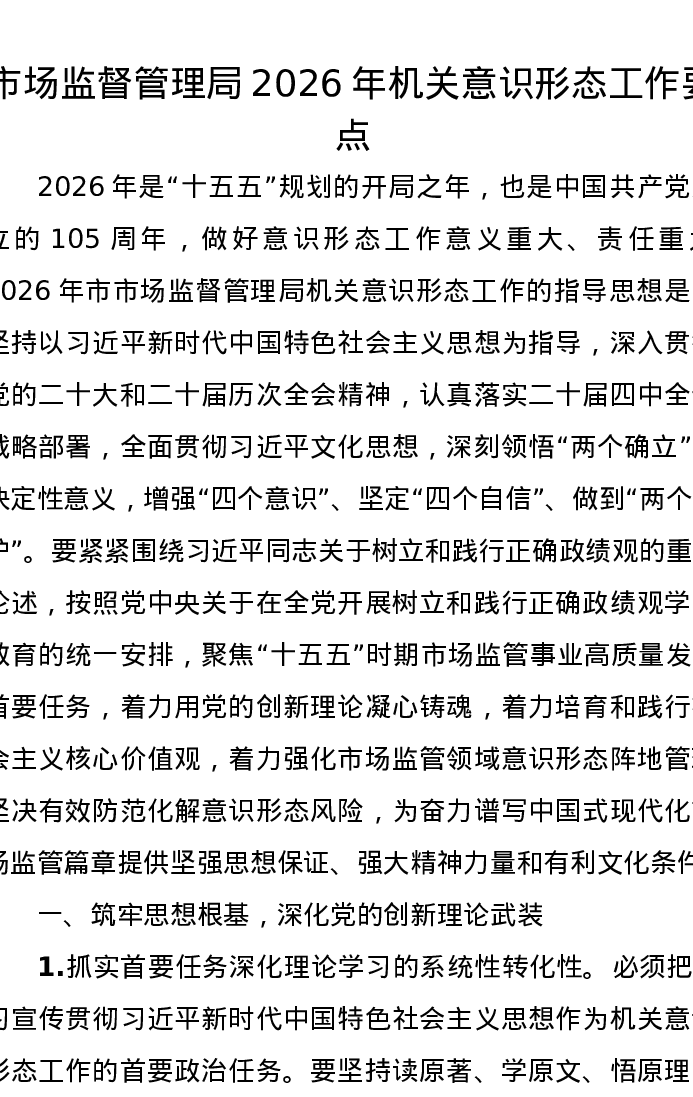 市场监督管理局2026年机关意识形态工作要点