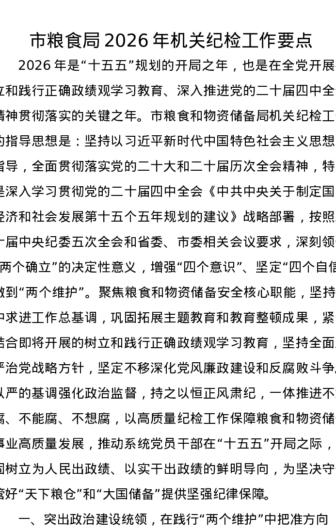 市粮食局2026年机关纪检工作要点