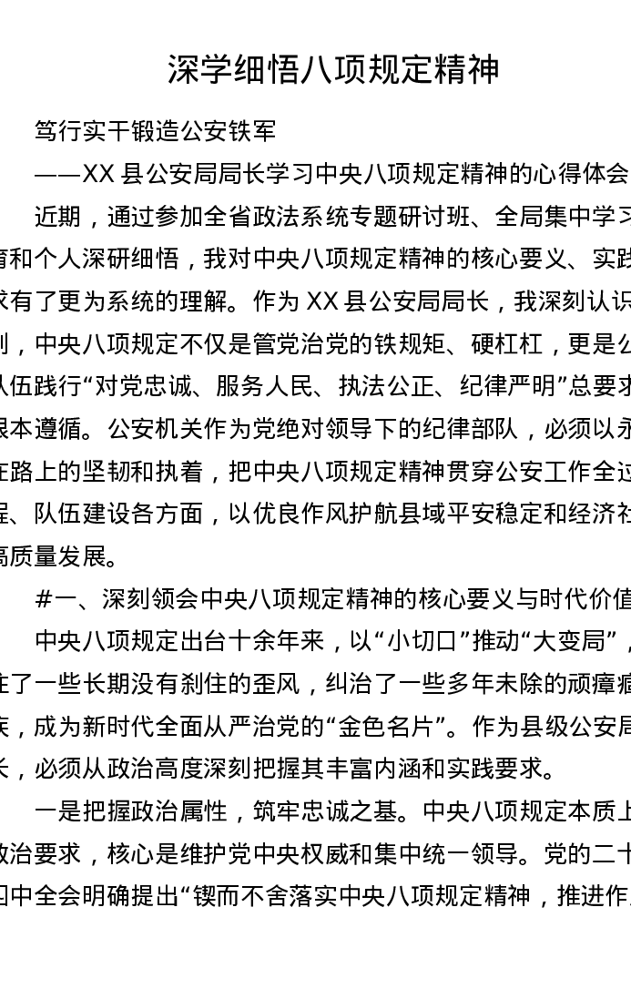 XX县公安局局长学习中央八项规定精神的心得体会(3337字)