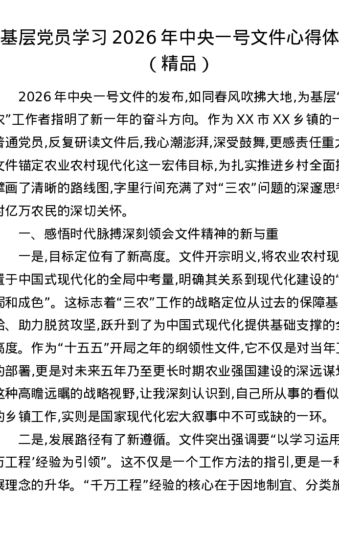 基层党员学习2026年中央一号文件心得体会