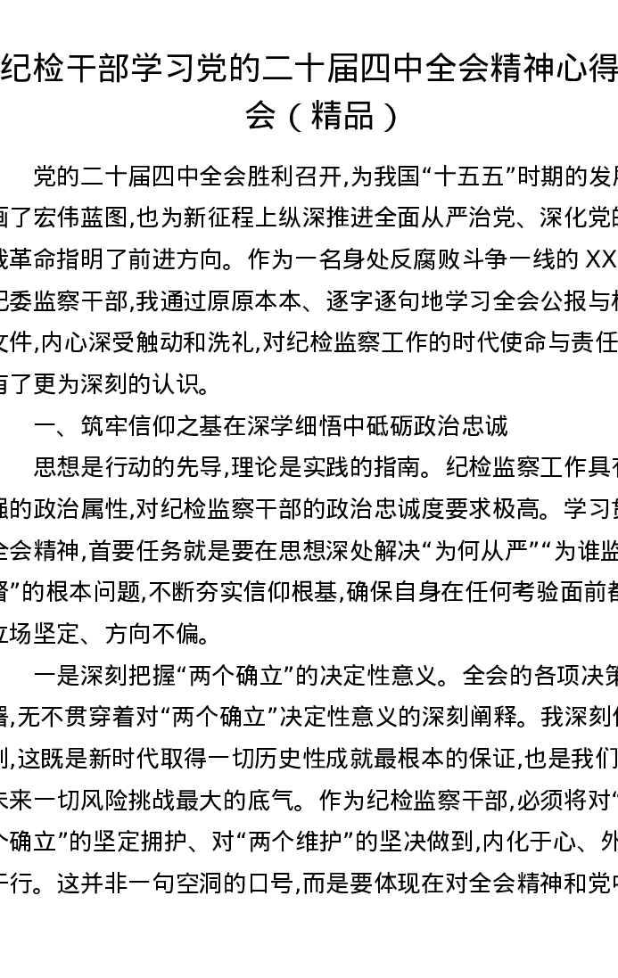 纪检干部学习党的二十届四中全会精神心得体会(精品)