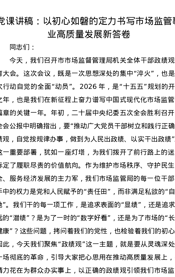 党课讲稿:以初心如磐的定力书写市场监管事业高质量发展新答卷