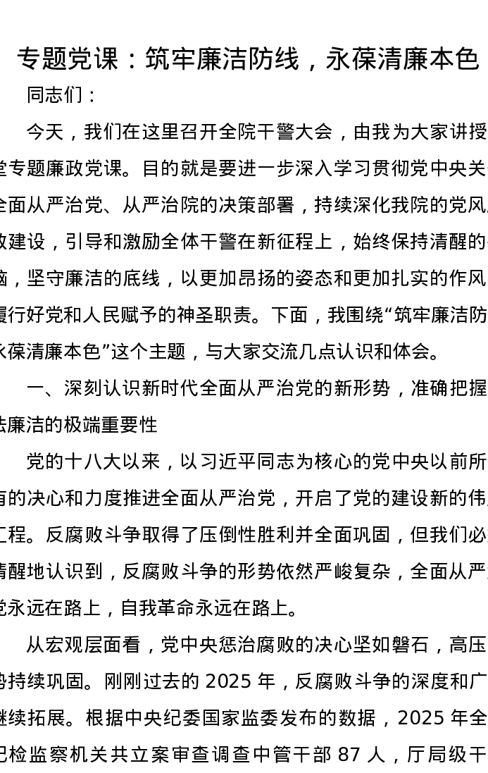 专题党课:筑牢廉洁防线,永葆清廉本色