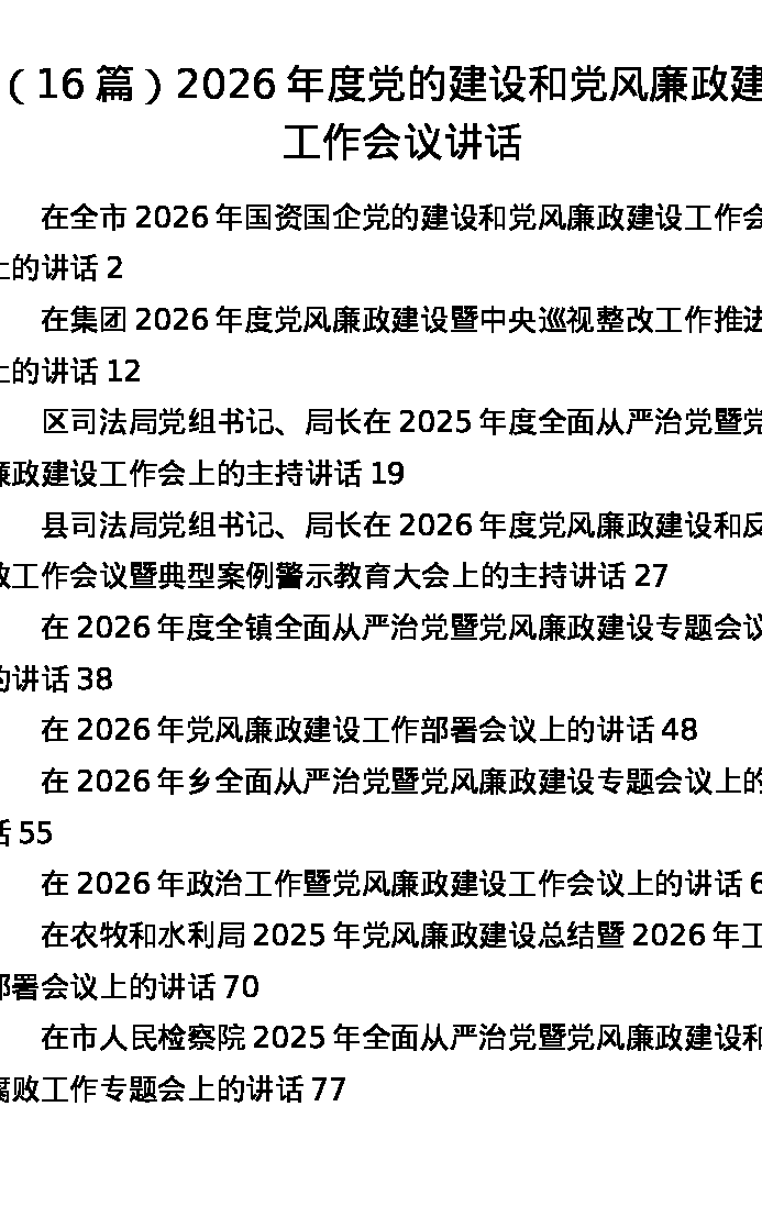 汇编:2026年度党的建设和党风廉政建设工作会议讲话16篇